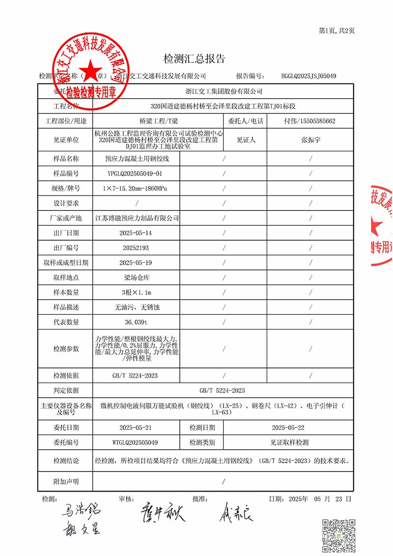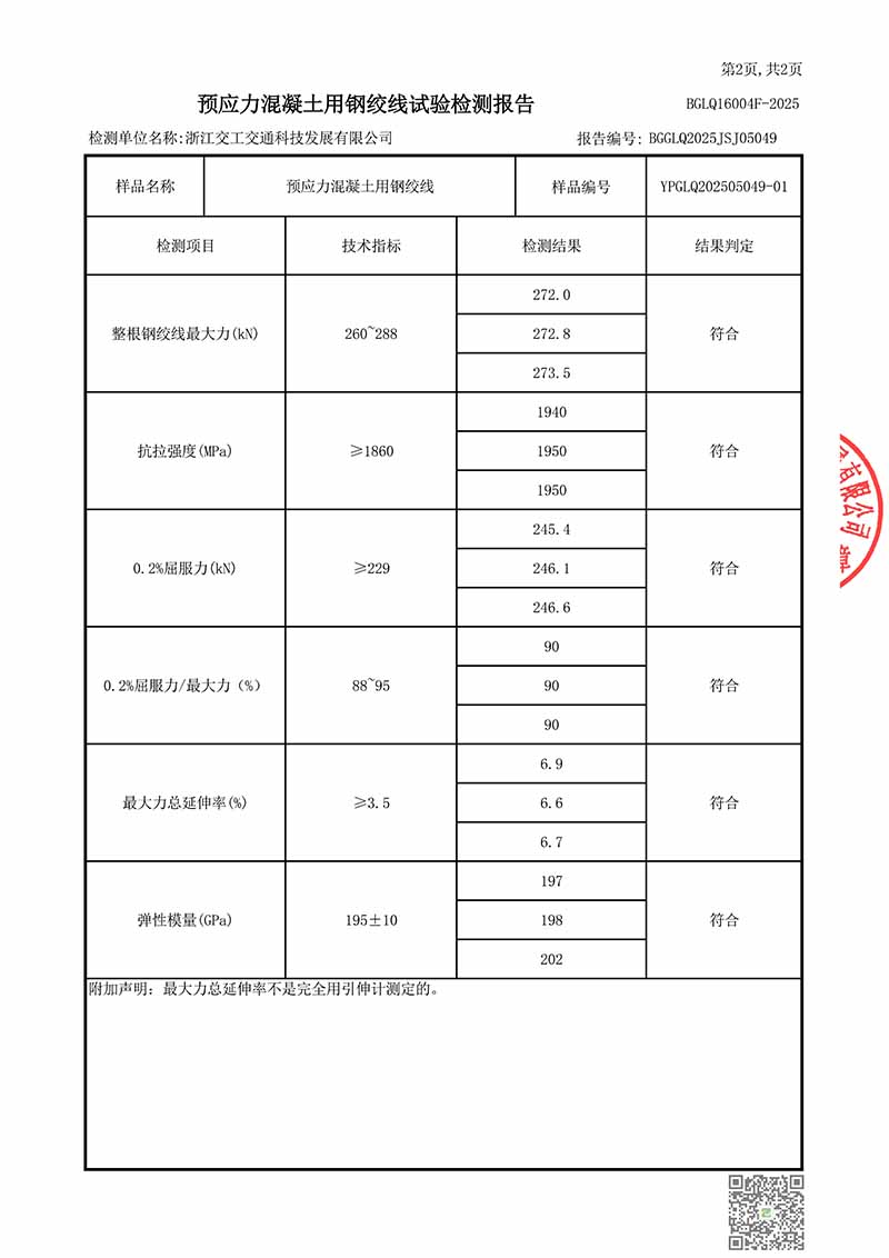 浙江交工集团股份有限公司钢绞线检测报告