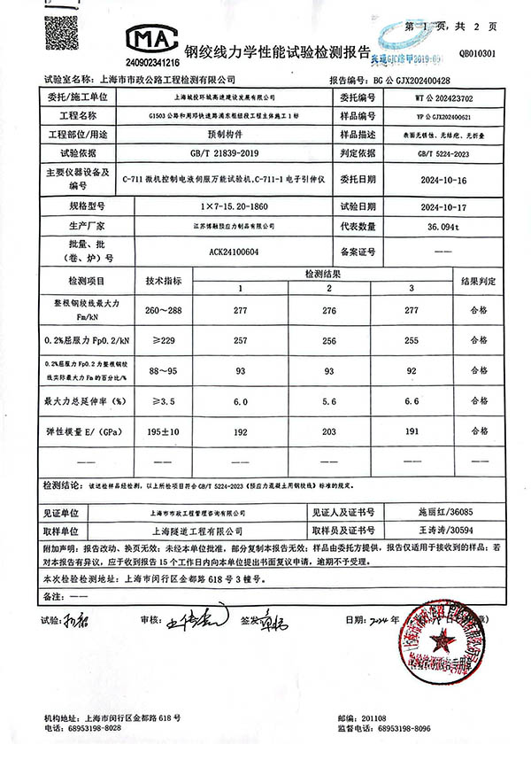 浙江交工集团股份有限公司钢绞线检测报告
