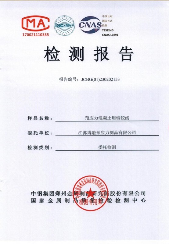 江苏博融公司预应力混凝土用钢绞线检测报告